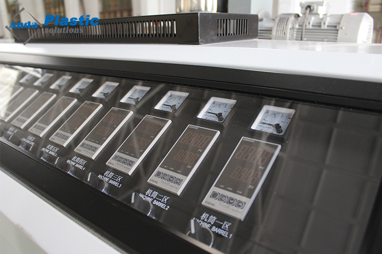 Ini terutama disusun oleh ekstruder sekrup kembar kerucut, cetakan, tangki kalibrasi vakum, mesin pengangkutan, mesin pemotong, stacker, mesin belling.